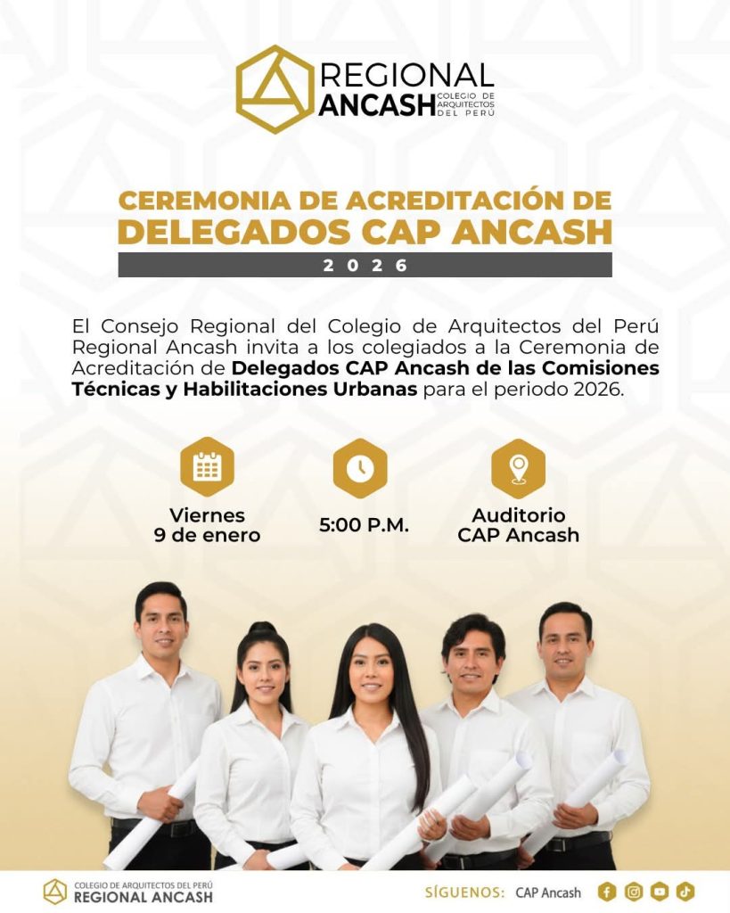 El Consejo Regional del CAP Ancash invita a los arquitectos colegiados a participar de la Ceremonia de Acreditación de 𝗗𝗲𝗹𝗲𝗴𝗮𝗱𝗼𝘀 𝗖𝗔𝗣 𝗔𝗻𝗰𝗮𝘀𝗵 𝗱𝗲 𝗹𝗮𝘀 𝗖𝗼𝗺𝗶𝘀𝗶𝗼𝗻𝗲𝘀 […]
